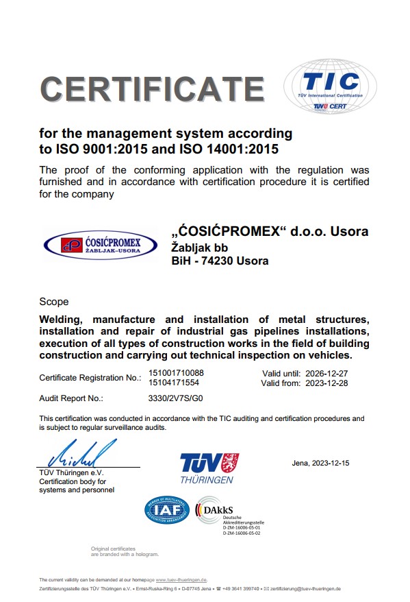 ISO STANDARD CERTIFIKATI ISO STANDARD: 9001:2015 / 14001:2015 download ISO STANDARD: DIN ISO 3834-2 download ISO STANDARD: DIN ISO 3834-2 download ISO STANDARD: EN 1090-1:2012 download ISO STANDARD: DIN EN ISO 1090-2 download
